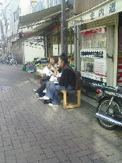 道は子どもの遊び場 親も子どもを見ながらお茶 焼き芋屋さんも繁盛 美野島めぐりの受付
